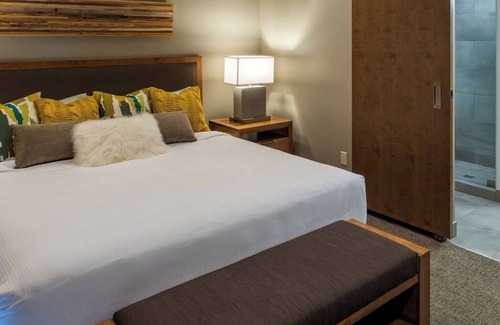 Unwind in Grand Peak * at this charming lodge. This cozy retreat features a comfortable bedroom and a lovely living room with a sofa bed for extra guests. Enjoy the convenience of WiFi, a washing machine, and AC during your stay. With access to a fitness room and other amenities, guests can relax and recharge in this enjoyable space. You're sure to make fantastic memories with a stay at our place.