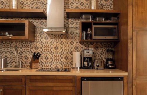 This Grand suite at the Grand Solmar Pacific Dunes Resort offers stunning ocean views. The spacious 1248-square-foot suite comfortably accommodates up to four guests, featuring a king-sized bed and an additional Murphy bed. Enjoy a fully equipped kitchen and two large bathrooms for your convenience.
