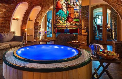 Featuring inner courtyard views, Grand Farma Michael in Netvořice offers accommodations, a garden, a bar, barbecue facilities, and a shared lounge. Each accommodation at the 4-star farm stay has garden views, and guests can enjoy access to a spa facilities and a wellness packages. The farm stay also features free Wifi, free private parking, and facilities for disabled guests. At the farm stay, the units have a wardrobe. Each room is fitted with a private bathroom. At the farm stay, each unit is fitted with bed linen and towels. Guests are welcome to eat at the on-site traditional restaurant, which is open for dinner, lunch, and brunch. The area is popular for cycling, and bike rental is available at the farm stay. Outdoor play equipment is also available at Grand Farma Michael, while guests can also relax on the sun terrace. Aquapalace is 22 miles from the accommodation, while Prague Castle is 29 miles from the property. The nearest airport is Vaclav Havel Prague, 34 miles from Grand Farma Michael, and the property offers a paid airport shuttle service.