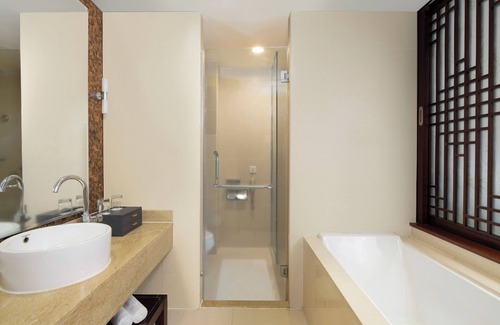 Grand Mercure Sanya Yalong Bay offers 124 air-conditioned accommodations with complimentary bottled water and bathrobes. Accommodations offer separate sitting areas. Select Comfort beds feature premium bedding. A pillow menu is available. 40-cm LCD televisions come with cable channels. Bathrooms include bathtubs or showers with rainfall showerheads, slippers, hair dryers, and toothbrushes and toothpaste.