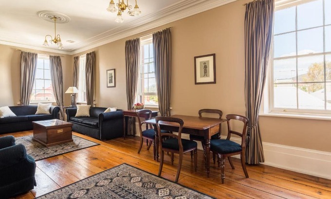 Superbly located right on Arthur Circus in Battery Point, the Grand Old Duke offers the elegance and comfort of a bygone era. Guests are provided with free WiFi, free on site private parking and free laundry. The property is centrally located to walk to a number of Hobart restaurants. It is a 5-minute walk from the Salamanca Markets and iconic landmarks. Dating back to 1850, the Grand Old Duke offers truly elegant apartment accommodation with antique furnishings and modern, private bathrooms. Hobart International Airport is 15km away.