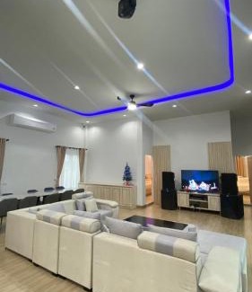Grand Pool Villa Khonkaen เขื่อนอุบลรัตน์ is located in Ban Khok Sung, just 23 miles from CentralPlaza Khon Kaen and 23 miles from Khon Kaen Train Station. This property offers a private pool, free Wifi, and free private parking. Kaen Nakorn Lake is 24 miles from the villa and Khon Kaen University is 20 miles away. The spacious villa includes 6 bedrooms and a living room with a flat-screen TV. The accommodation is non-smoking. If you'd prefer to not eat out, you can make use of the kitchen facilities. North Eastern University is 24 miles from the villa, while Thung Sang Lake is 25 miles away. Khon Kaen Airport is 24 miles from the property.