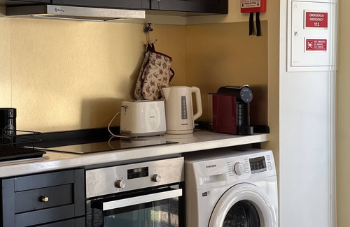 The kitchen is equipped with an oven, a stovetop, and a refrigerator, as well as an electric kettle, a microwave, and cookware. Bathroom amenities include a hair dryer, towels, and toilet paper. And you can even travel light because you'll have access to laundry facilities. Other amenities at this 1-bedroom, 1-bathroom rental include a living room, bed sheets, and an ironing board.