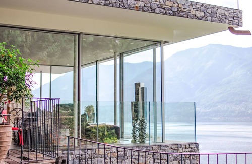 Ronco sopra Ascona 4 km from Ascona: Enjoy the "dolce far niente" with a breathtaking view of Lake Maggiore and the Unesco cultural heritage - the Brissago Islands! La Gioia, the oasis of well-being for all the senses. Large, very beautiful villa "La Gioia", detached, renovated in 2022, surrounded by trees. In a quiet, sunny, elevated position residential area (villas), 3 km from the lake, in the countryside, south facing position. For shared use: beautiful garden to relax, swimming pool angular heated (3 x 4 m, depth 160 - 160 cm, seasonal availability: 01.May. - 30.Oct.) with internal staircase and shutter cover. Outdoor shower, poolhouse with fridge and WC, patio, pergola, terrace, barbecue. In the house: internet access, in summer, use of sauna is included, in winter, use of sauna is included, lift. Linen change weekly (suppl. charge extra). Towel change weekly (suppl. charge extra). Room cleaning on request (extra). House maid on request (extra). Bread roll service, beverage service and breakfast on request. Pre-arrival grocery service. Airport transfer (extra). Parking at the house at 60 m. Bus stop "Gruppaldo, Bivio" 800 m, railway station "Locarno Muralto" 6.5 km, thermal baths "Termali Salini & Spa Locarno" 6.7 km. Golf course (18 hole) 5 km. Nearby attractions: Ascona, Piazza Grande Locarno, Isole di Brissago, Mercato Cannobio IT. Well-known lakes can easily be reached: Lago Maggiore, Lago di Lugano, Lago di Como. Hiking paths: Cardada, Vallemaggia, Valle Verzasca, Centovalli. Please note: car recommended. Not suitable for children under 14 years. On request: airport transfer to the holiday accommodation. The owner does not accept any groups. The owner does not accept any youth groups. 24hr guard. Owner lives in separate semi-detached house. Additional accommodations can be booked. Property ref. CH6622.66 is situated on the same property.