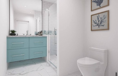 This beautiful and cozy apartment has 655 sf with a light and spacious living room with a pull out sofa and a 55" smart TV, with a dining area for six, all furnished with an elegant costal palette. The beach is a 10 minute walk away, with no busy roads to cross. There are an amazing restaurants and coffee shops a 5 min walk away. The apartment has wifi and Smart TV, Air - conditioning with heating is available throughout. Laundry W/D