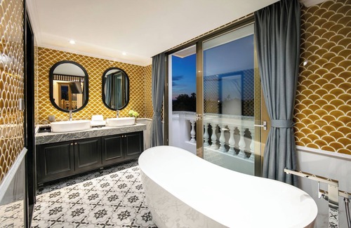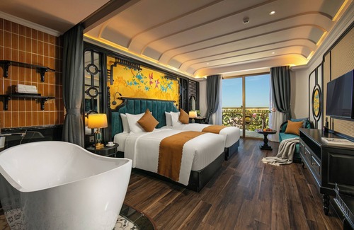 Grand Sunrise Palace Hoi An offers 85 air-conditioned accommodations with fireplaces and minibars. Rooms open to balconies. 42-inch Smart televisions come with satellite channels. Bathrooms include separate bathtubs and showers, bathrobes, slippers, and bidets.