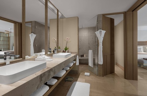 Grand Velas Boutique Hotel - Adults Only - All Inclusive offers 79 air-conditioned accommodations with minibars and espresso makers. Each accommodation is individually furnished. Beds feature down comforters and premium bedding. A pillow menu is available. Premium cable television is provided. Bathrooms include separate bathtubs and showers with jetted bathtubs, rainfall showerheads, and hydromassage showerheads. Bathrooms are also outfitted with bathrobes, slippers, and toothbrushes and toothpaste.