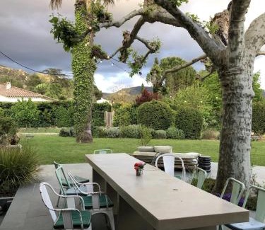 Grande Villa Provençale avec Piscine Privée à Gémenos is located in Gémenos, just 14 miles from Marseille Chanot Exhibition and Convention Center and 14 miles from Rond-Point du Prado Metro Station. The property is around 13 miles from Circuit Paul Ricard, 14 miles from La Timone Metro Station, and 14 miles from Castellane Metro Station. There's a seasonal outdoor pool and guests can use free Wifi and free private parking. Providing pool views, this villa also provides guests with a satellite TV, a well-equipped kitchen with a dishwasher, an oven, and a microwave, as well as 1 bathroom with a bath and a hair dryer. For added privacy, the accommodation features a private entrance. Guests can make the most of the warm weather with the property's barbecue facilities. Orange Velodrome Stadium is 15 miles from the villa, while Saint-Ferreol Street is 15 miles away. Marseille Provence Airport is 29 miles from the property.