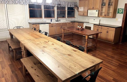Home away from home on the Spearhead Trails near Pocahontas VA. Now decorated for Christmas. This farmhouse features 6 bedrooms and a large eat in kitchen that will seat up to 16 people. Separate bunkhouse to take off those muddy clothes and a 2 car garage for storage of ATV's or motorcycles. Property also features 11 acres. Enjoy the outdoors with a large brick paved patio, oversized firepit and a large lighted gazebo overlooking the property. As with many farmhouses, the covered front porch will seat 10-12 people. The house is located within a few short miles of many ATV trail entrances so no need to load ATV for your rides. Winding back roads to the "Back of the Dragon" .This farmhouse is perfect for those large family gathering or groups of travelers. Currently considering small weddings.