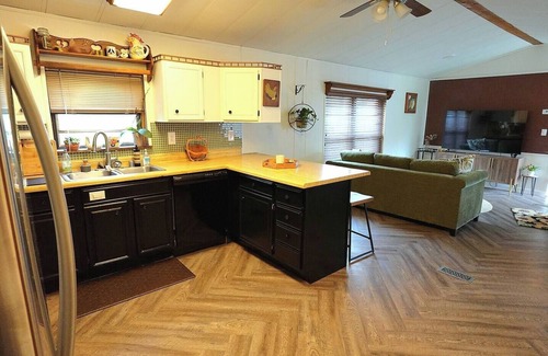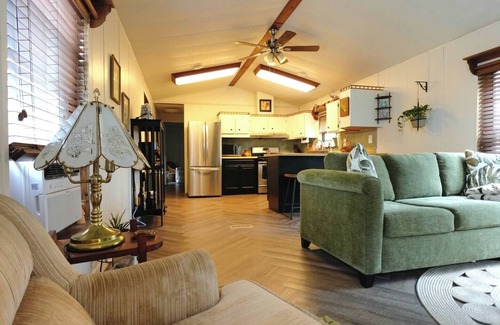 Discover nostalgia in our retro rural country cottage. Unwind in serene countryside, surrounded by vintage charm. Perfect for a peaceful getaway or family gathering. With 2 unique bedrooms/ensuites and a pull out sofa, there is plenty of space for R&R! Just like Grandma's house, but more hip with fast wifi! Book now and make timeless memories! *this is a country home surrounded by KS nature. You may see bugs, turtles, and chickens oh my! Welcome to Grandma's fancy single-wide trailer attached to Rosewood Lodge (Coming Soon) Peaceful country feel, quiet, and many nature sounds outside. Full set of cookware and coffee bar to enjoy homemade meals and drinks. Fast WiFi and large tv for watching movies or catching a game. Bedrooms on opposite ends each with their own bathroom. Additionally, a queen size sofa sleeper located in the living room. Guests will have access to the entire space, front and back patios along with 2 acres to roam and multiple fire pits. Guests can reach us through the Airbnb messaging and if needed by phone. We are sometimes in the area and can come to the property if an emergency requires our attention. Located on a quiet street, peaceful countryside surrounds you. Plenty of parking off street in the drive directly in front of the home. Only a 5 minute drive from the nearest convenience mart nestled just outside of Iola and Gas with a short drive over to charming Humboldt.