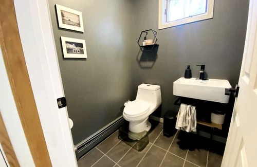 Main floor: The main floor features a full chef’s kitchen (with food processor, vitamix blender, coffee maker and grinder plus anything else you could need to curate a beautiful meal *we love to cook so it’s a top priority of the home*). We have a large lounge set and 65” TV, large deck with dining area, as well as a fitness room and powder room with a bidet.