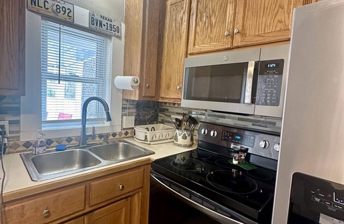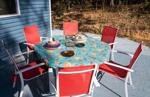 Like going to visit Granny, this adorable, well-appointed retreat sits in 3 private acres surrounded by woods. Electric fireplace, 2 TV's, washer/dryer, new 5-burner electric stove/oven, microwave, & side by side fridge/freezer, with dining area for 8. Charcoal grill on the partially-covered back patio also has outdoor seating for 8. Firepit for s'mores. Expansive front deck. 2 bedrooms, a loft & pullout sofa sleeps 8 total. 1 mile to Lake DeGray, 5 miles to Arkadelphia, 15 miles to Hot Springs. Cuddle up in this comfortable abode with central heat & air. Bring an ear of corn to put on the squirrel feeder in front, relax in 1 of the rockers on the big deck & enjoy watching the squirrels while they watch you! The bird feeders in front & in back provide additional entertainment. Also enjoy the sounds of the stream that runs in Spring, close to the front deck. The loft has its own small balcony with an overview of the whole backyard.