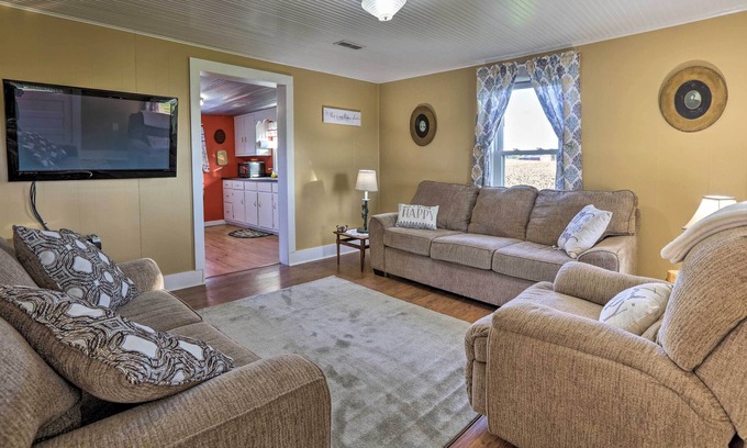 Get out of the city and reconnect with loved ones on your next trip to the Bluegrass State. This 3-bedroom, 1-bath vacation rental sits on 19 acres of farmland just outside of Campbellsville, allowing easy access to downtown and outdoor adventures. 'Granny's Country Cottage' boasts a cozy and fully furnished den, a convenient kitchen, indoor and outdoor dining areas, and everything else you need for a relaxing stay. Rent a boat for a day on Green River Lake or check out the Bourbon Trail!