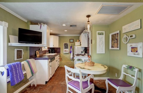 The Grape House has an open floor plan. Spacious 400 sqft private guest house. Nicely decorated with a brick floor, full kitchen & full bath with a washer/dryer.