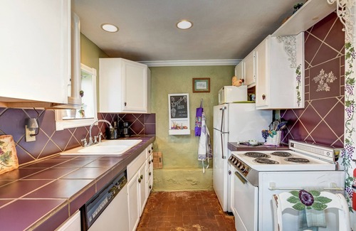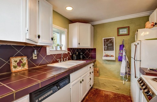 Bright & Cheery with everything needed except you and your food. The only step is at the front entry gate. Off street parking beside the concrete driveway by the sidewalk.