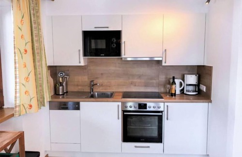 "Gratlspitz", 2-room apartment 35 m2 on 1st floor. Spacious and bright, beautiful and cosy furnishings: 1 double bedroom with 1 double bed (180 cm, length 200 cm). Exit to the balcony. Large kitchen-/living room (oven, dishwasher, 4 ceramic glass hob hotplates, toaster, kettle, microwave, electric coffee machine) with dining nook and satellite TV (flat screen). Exit to the balcony. Shower/WC. Heating. Wooden floors. Balcony. Balcony furniture, sitting area. Marvellous view of the mountains, the valley and the resort. Facilities: Internet (WiFi, free). Please note: smoke alarm.