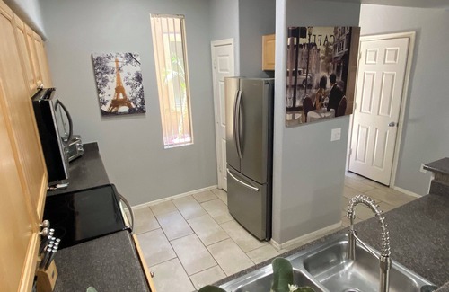 A dog friendly 2 bedroom, 2.5 bath luxurious townhouse with two $3-million dollar club houses, state-of-the-art gym facilities with classes. The unit is completely decorated with brand-new amenities. The master bedroom has a king bed, 50" Smart TV, furnished balcony, shower and large soaker tub. Refrigerator, Stove, Microwave, and Dishwasher. All kitchen equipment included. Washer and Dryer, 55" Smart TV, high speed Internet, garage with remote. Beautifully designed and located near the world famous Grayhawk Golf Club. Minutes away from fine dining (Mastro’s Steakhouse, Eddie V's, Ocean Club, Armitage, Flemings), shopping (DC Ranch Marketplace, Kierland Commons, Fashion Square, and Desert Ridge) and world-class golf courses (including Grayhawk, TPC, Phoenix Open Golf Tournament, Troon North, Kierland, Talking Stick, Eagle Mountain, Wildfire and We-Ko-Pa).