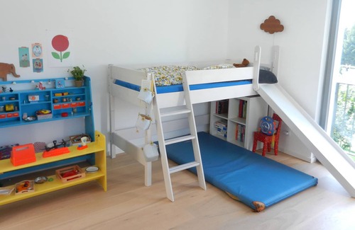 The house has a modern open character. Large window areas allow an unobstructed view of the green. The house is in a well-kept garden with a large meadow. There is a trampoline, sandpit, etc. for families. The house has a living space of 170sqm.