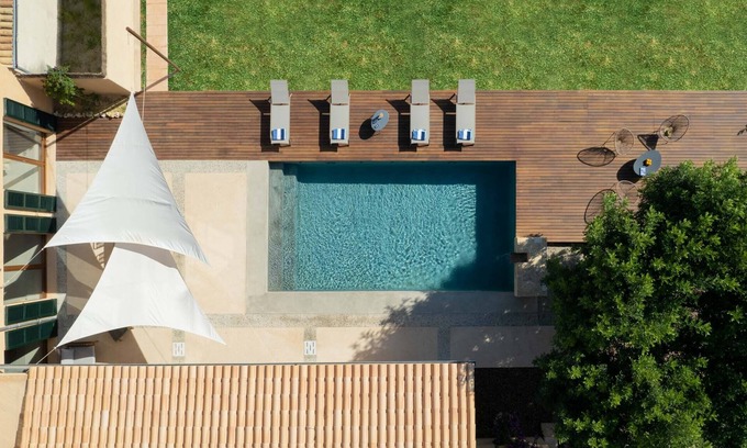 This town house with pool and large garden in Consell is modern and tastefully furnished and is ideal for an occupancy of up to eight people. The Can Cunso 30 was completely renovated in 2022 under the direction of a renowned local architect, featuring stylish elements and design down to the last detail.