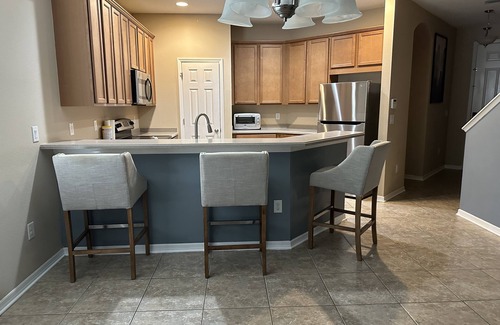 Great home for multiple families who want a spacious home and want to entertain. The community has a gym and a great pool. The home has a grill out back with a covered patio. The community has a pool and a not tub and can be booked with advance notice for private parties.