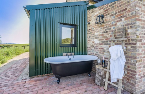 Outside, multiple seating areas allow you to fully appreciate the countryside ambience. Enjoy dinner alfresco before unwinding in the recliner chairs around the fire pit as the sun goes down. After dark, relocate to the rear of the cottage where a fabulous roll-top bath awaits. Lay back in the bubbles and look up – there’s no light pollution here so on a clear night you can expect a starry extravaganza.