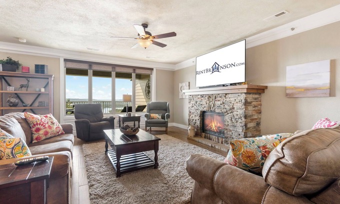 Step into the spacious fully equipped kitchen, a culinary haven perfect for preparing delicious meals for your family. Whether you're whipping up breakfast favorites or indulging in a gourmet dinner, this kitchen is sure to inspire your inner chef. The living room invites relaxation with its cozy fireplace and plush Lazyboy massage chair, providing the perfect spot to unwind after a day of adventure. Need extra sleeping space? No problem. Two sleeper sofas offer added convenience without compromising on comfort. Step outside onto the deck and be captivated by the beauty of Table Rock Lake. With outdoor seating, it's the ideal spot for savoring your morning coffee or enjoying a sunset cocktail. With two bedrooms and two bathrooms, each featuring king beds and ensuites, Hawthorne 1402 ensures a restful night's sleep for all guests. And with a washer and dryer conveniently located within the unit, you can pack light and enjoy worry-free travels.