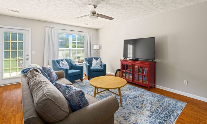 2 bedrooms, 2.5 baths, washer and dryer, Wireless internet, Flat screen TV's in both bedrooms and Den. Great location, only 2 miles to Jordan-Hare. We are located on the West side of the University. Less traffic going to the game and convenient to everything. Wal-Mart Neighborhood Market less than a mile away and Publix 1.5 miles. Parking right out front quiet neighborhood. Close to everything. Complete contactless check-in and check-out.