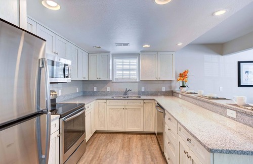 This condo is perfect for vacationers looking for a little extra space, or two families vacationing together. Guests enjoy two fully-equipped kitchens and living spaces. Two bedrooms allow privacy, while two sleeper sofas make room for family and friends. Each space has its own full bathroom as well.