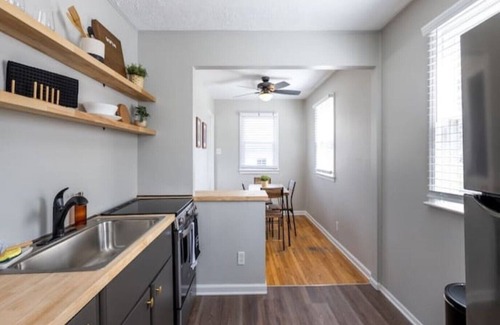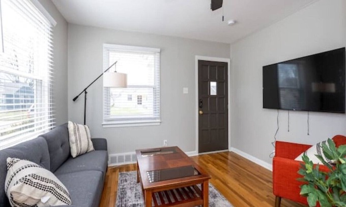 Cozy "Little Pink Houses" type house that has been fully updated this year. This can be a "stair free" stay as only the laundry and the extra room are down the stairs. The bedrooms are cozy and built for comfort as the neighborhood is quiet except during Indianapolis Motor Speedway events such as the Indianapolis 500--please remember that track has no lights so it is never at night! Great yard for walking your doggos(not fenced in though).