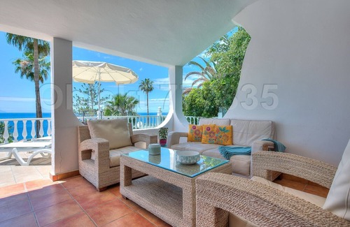 In front of the living room you have a large terrace with dining table and comfortable seating. From the terrace you have a wonderful view of the Atlantic, the rock giants and the island "La Gomera". You can enjoy the fantastic sunsets from your large terrace or the garden in the evening.