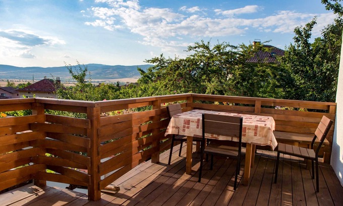 the city of Sapareva Banya, Rila Mountains as well as Sapareva Banya Valley. The terrace is equipped with a table for up to 6 people, an electric grill, a sundeck, as well as a green courtyard to relax or play.