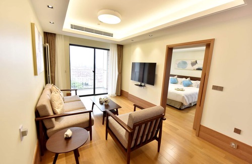Green Court Place Jinqiao Middle Ring Shanghai offers 187 accommodations with safes and complimentary bottled water. Accommodations offer separate sitting areas and include dining tables. Beds feature down comforters. Accommodations at this 4-star hotel have kitchens with refrigerators, stovetops, microwaves, and separate dining areas. Bathrooms include showers, slippers, complimentary toiletries, and hair dryers.