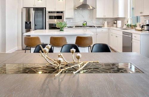 Featuring cutting-edge stainless-steel appliances, this fully equipped kitchen is suitable for preparing any meal, be it a modest breakfast, a fast snack, or an elaborate three-course gourmet feast. Spacious quartz countertops and the central island provide ample room to unleash your cooking creativity.
