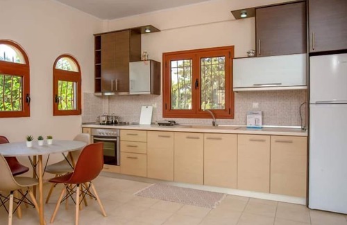 A 2-bdrm apartment on the 1st floor, set on a private land plot of 1400sqm, in lush green surroundings. The property is just 400m above a sandy beach. The apartment features brand new furniture and is fully equipped to provide a most comfortable stay for 4 guests. The apt is ideal for a small family or friends who seek calm & relaxation, with close proximity to amenities and the sea. The beautiful views of the surrounding landscape of pure nature are truly amazing.