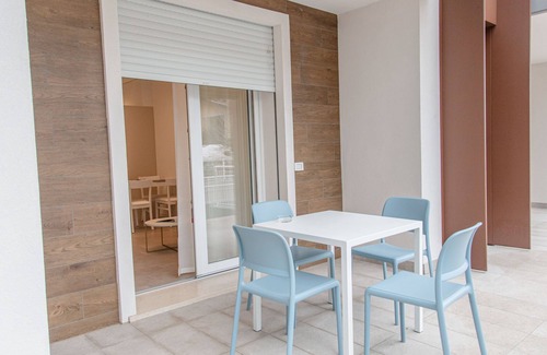 Modern residence "Green House", 2 storeys, built in 2024. 12 apartments in the residence. In the district of Ca' Pasquali 4.3 km from the centre of Cavallino-Treporti, 12 km from the centre of Lido di Jesolo, 7 km from the centre of Punta Sabbioni (boat to Venice), 100 m from the sea, 100 m from the beach. Breakfast full board half board possible on request (extra). Communal covered parking at the house. Bus stop 900 m. The photo is just an example. In the nearby Camping Village Cavallino (same owner) our guests may use their pools (27th May-29th Sept bathing caps are mandatory) and take part in the animation programme for adults and children from 5 years (1st June-30th Aug.) for free, whereas the Spa is against payment. All the guests have to wear a wristband for identification. Please note: During winter season only the Spa will be open and only from Dec. 6th 2024-Jan 6th 2025.
