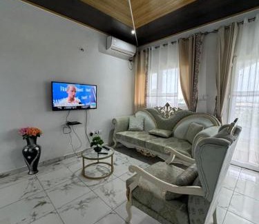 Green house heaven features air-conditioned rooms in Kribi. This property offers access to a balcony and free private parking. Guests can enjoy garden views. The apartment provides guests with a terrace, sea views, a seating area, a flat-screen TV, a fully equipped kitchen with a fridge and kitchenware, and a private bathroom with bidet. The apartment complex offers certain units with city views, and the units are fitted with a kettle. At the apartment complex, some units are soundproof. Guests can relax in the garden at the property. Douala International Airport is 103 miles away.