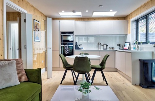 Our prestigious Eco Homes in the vibrant Hove. Green Mews 3 offers stylish accommodation for 6 guests with ethically sourced furnishings and balcony. Pioneering sustainability with solar panels, underfloor heating, and recycled walls. Each house features private parking with EV charging, a patio, and eco-friendly amenities to get you started. Guests can make use of the wifi and smart TV, allowing them to stream their favourite shows and movies from platforms like Netflix and Amazon Prime.