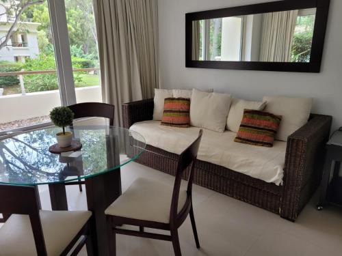 Offering a private beach area, Green Park 007 C Monoambiente frente al bosque offers accommodations in Punta del Este. Among the facilities of this property are a restaurant, a 24-hour front desk, and full-day security, along with free Wifi throughout the property. Free private parking is available and the apartment also provides bike rental for guests who want to explore the surrounding area. Providing garden views, this apartment also offers a satellite flat-screen TV, a well-equipped kitchen with an oven, a microwave, and a toaster, as well as 1 bathroom with a hot tub and a hair dryer. The property has an outdoor dining area. The apartment also features an infinity pool and a hot tub for guests to relax in. Fitness classes are available at the property. A water park and kids pool are available at Green Park 007 C Monoambiente frente al bosque, while guests can also relax in the garden. Solanas Beach is a 11-minute walk from the accommodation, while Punta del Este Bus Terminal Station is 10 miles away. Capitán de Corbeta Carlos A. Curbelo International Airport is 2.5 miles from the property.