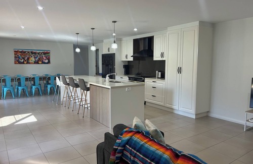 this beautiful home is a 4-bedroom near Forster. Situated on over 3 acres with a sparkling heated mineral plunge pool. The master has a king bed with ensuite, there is also a queen bed, twin king single beds, and even a cot & child bed for your little ones. The living room also features a cozy sofa bed for extra sleeping space. A delightful retreat for families or groups of friends looking to unwind and make lasting memories. A great place to call homebase while you're away, we hope you enjoy your stay.
