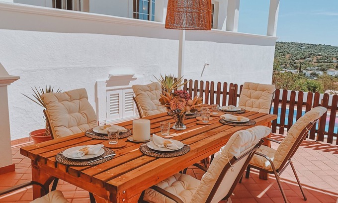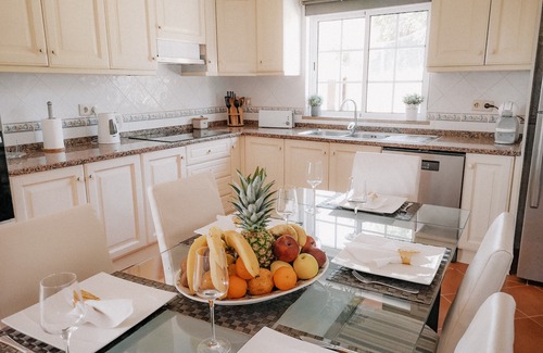 Villa in quiet and calm with sea and mountain views. 15 km from Faro airport. The villa has 3 bedrooms and 2 bathrooms, fully equipped kitchen with oven, microwave, electric hob, dishwasher, coffee maker, fridge, and first aid equipment. It also has 2 living rooms, TV, fireplace, terrace, barbeque, private pool, garden, private parking, laundry. And free internet access.