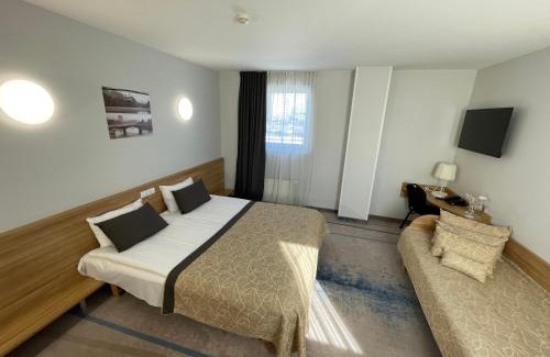 Located in a quiet part of Vilnius, 3.1 mi from Litexpo Center, Green Vilnius Hotel offers soundproofed rooms with free Wi-Fi and a flat-screen TV with satellite channels. Free private parking is available. All rooms of the Green Vilnius feature an elegant interior design with bright walls and carpeted floors. Each has a modern bathroom with a shower and a work desk. The Vilnius center is 3.1 mi from the Green Vilnius and is easily accessible through public transportation. The nearest bus stop is only 656 feet away. The hotel’s front desk is open 24 hours a day. Guests can rent a car directly from the hotel, which also organizes a shuttle service. In the mornings a breakfast buffet is available in the restaurant, which offers a selection of European dishes. Guests can enjoy a drink at the bar.