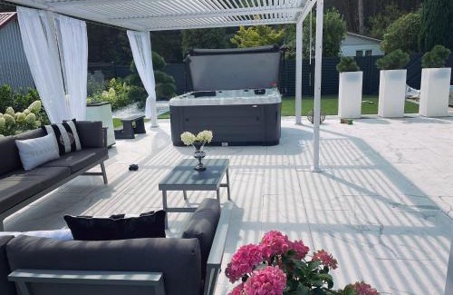 12 miles from Szczecin International Fair in Morzyczyn, Grey House Miedwie features accommodations with access to a hot tub and spa facilities. This property offers access to a terrace and free private parking. Staff on site can arrange a shuttle service. With free Wifi, this 3-bedroom villa provides a flat-screen TV, a washing machine, and a fully equipped kitchen with a dishwasher and oven. Towels and bed linen are provided in the villa. There's also a seating area and a fireplace. Guests can make the most of the warm weather with the property's barbecue facilities. The villa has a picnic area where you can spend the day outdoors. Port of Szczecin is 17 miles from the villa, while Waly Chrobrego Promenade is 18 miles from the property. Solidarity Szczecin-Goleniów Airport is 32 miles away, and the property offers a paid airport shuttle service.