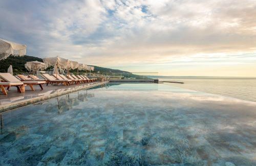 Set just yards from the sandy beach in Golden Sands, Grifid Vistamar Hotel offers a roof terrace with infinity pool, and a private beach with parasols and sunbeds free of charge for the guests. All air-conditioned rooms and suites of the Grifid Vistamar provide free WiFi, balconies with views of the sea or park and a bathroom. Adult-only rooms are available. The ultra all inclusive offer includes breakfast, late breakfast, lunch, afternoon snacks, dinner and midnight snack. Guests can enjoy local specialties in the main restaurant and in the three à la carte restaurants, with advanced reservation and minimum stay of 4 nights. A free dine around à-la-carte program is offered. A 24-hour lobby bar, a pool bar, beach bar and a pastry shop are also available on site. Wellness facilities such as sauna and massages, are upon request and at a surcharge. The fitness area is free. Guest can also enjoy free access to the Grifid Aqua Park with adults and children section at the partner property Grifid Hotel Bolero. The animation team proposes various activities such as aerobics, aqua gymnastics, Pilates, Te Bo, Zumba, Fit ball, Relaxing beach walk, Nordic walk, Walk in the forest, darts or table tennis. Close to the Grifid there are shops, bars, restaurants, night clubs and a casino. The nearest international airport is in Varna, 16 mi away.