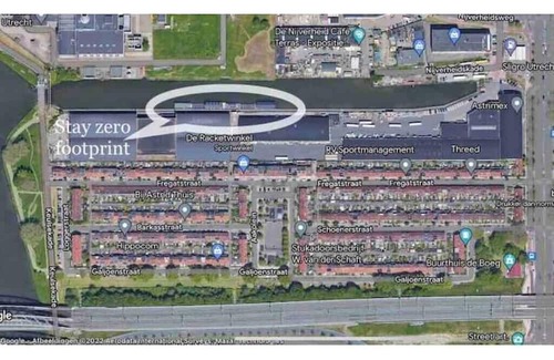 Stay in this industrial area at our off-grid accommodation. With this completely self-sufficient houseboat (solar energy, drinking water purification and biotank) we want to run a business without leaving a footprint.