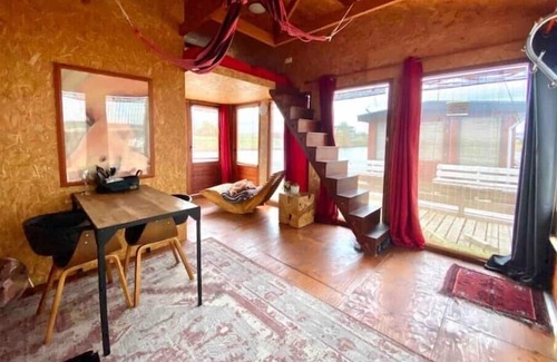 Via a small path from the dock, you get access to your own space. This studio apartment has a loft bed with two single mattresses, separate duvets and pillows. The apartment has a private bathroom and a lounge/dining area complete with canal views and a hammock so you can make the most of your adventure.