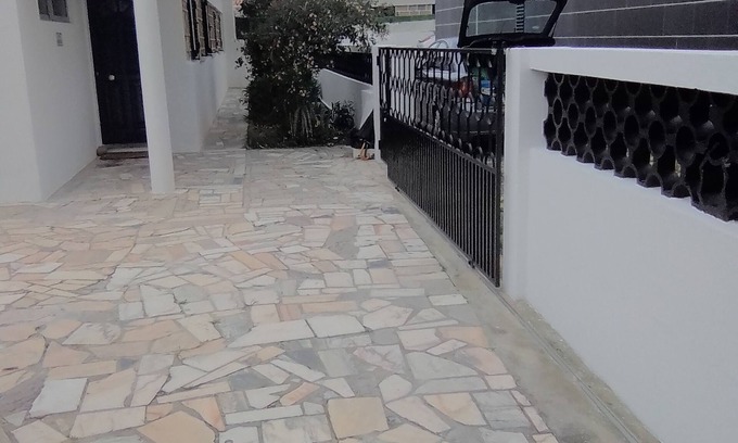 In a quiet cul-de-sac with a small garden (with orange and lemon trees), which overlooks the beach street, at the "a caravelha" cafe (see photo google maps). Nearby restaurants, café bar, supermarket, (market in summer), pharmacy.