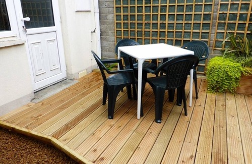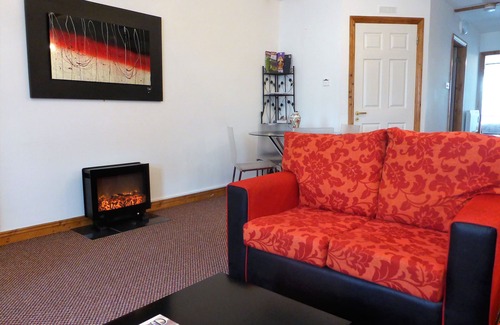 Two bedroom ground floor apartment (street level) in heart of Callan Town within walking distance of all amenities. Totally refurbished, modern apartment with lounge/diner, fully fitted kitchen, shower room, one double room and one twin (single bed with full size pull out single bed underneath). Door to private south facing patio with furniture. Free on street parking outside.