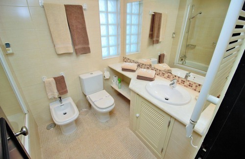 The spacious apartment has an open plan lounge and dining area with access to a front terrace, fully fitted and equipped kitchen. Three large bedrooms, two share a bathroom and one has a ensuite bathroom and access to the front terrace. Additional guest toilet. The apartment has air conditioning, wifi and lazer tv. The apartment is located near the tennis academy just a few minutes walk. On the valet do Lobo resort there are 2 golf courses, several restaurants, children’s area, medical centre, small supermarket, spa and two pools all facilities are at additional costs.
