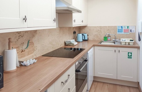Kitchen: With electric oven, electric hob, microwave and fridge.