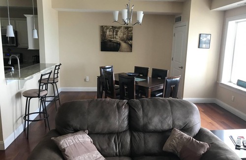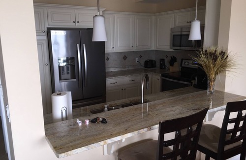 • Kitchen has stainless steel appliances, granite countertops, Keurig and traditional coffee maker and a breakfast bar that seats 2.